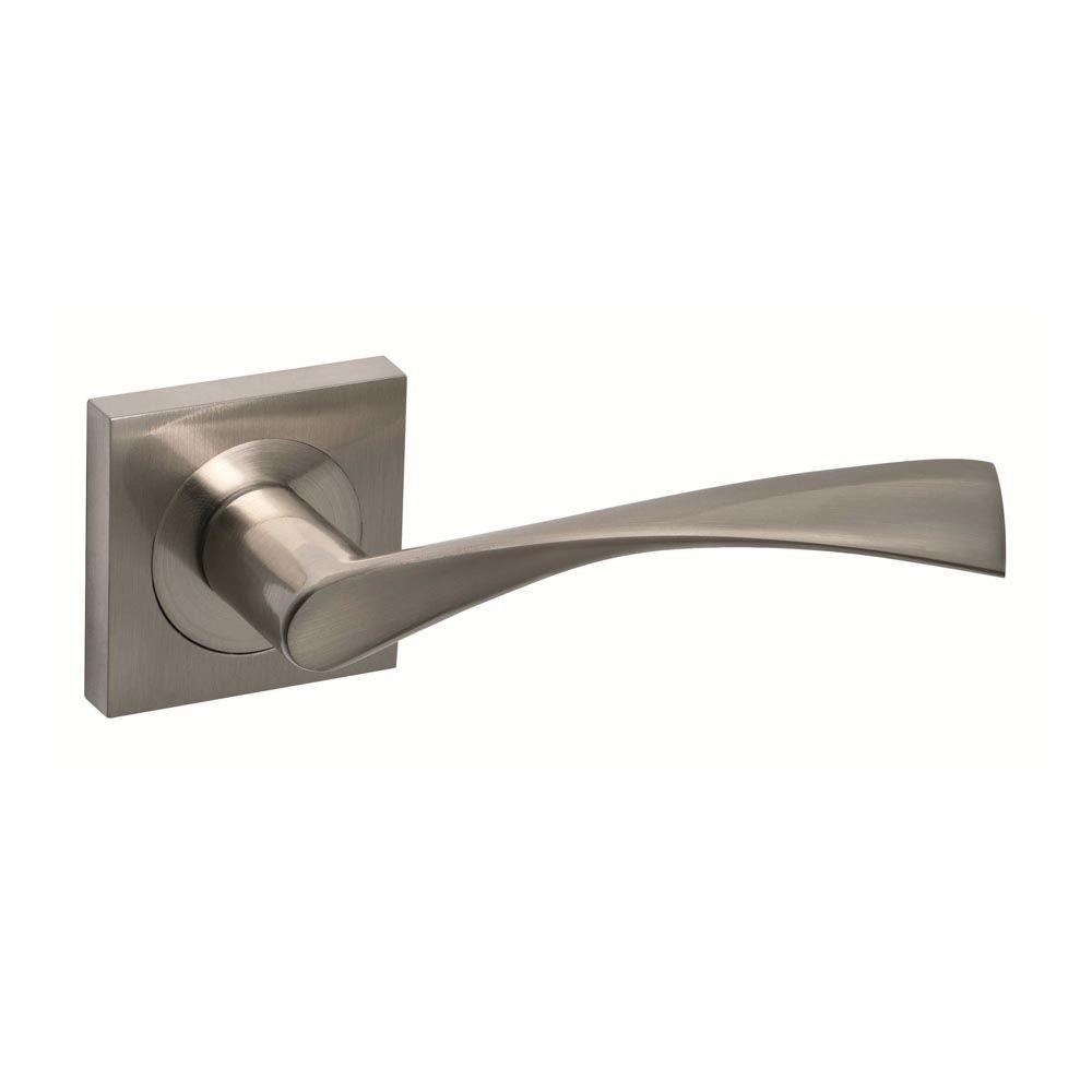 JUEGO DE MANIVELAS MODELO ALYA C/ROSETA CUADRADA EN NIQUEL SATINADO.