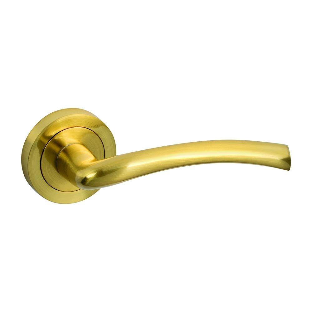 JUEGO DE MANIVELAS MODELO LYRA C/ROSETA 50MM EN BRILLO SATINADO