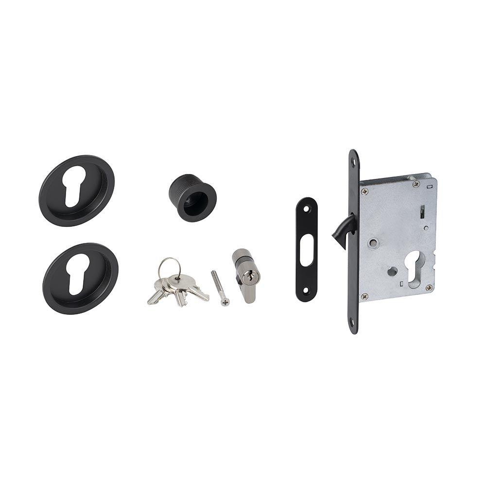 Kit puerta corredera con bocallave -A- y cilindro con 3 llaves NEGRO.