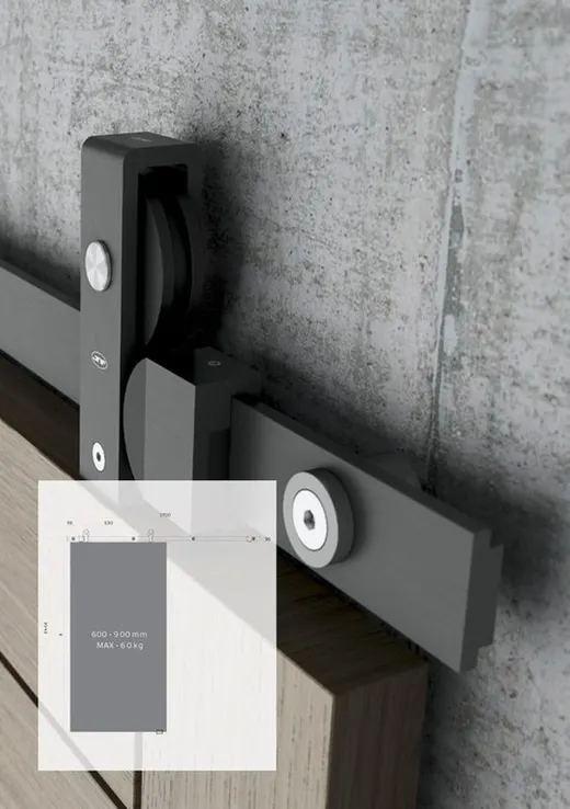 Kit para instalar en su puerta corredera de madera de la marca JNF. Modelo Charriot. Incluye mordaza madera, guía de 180 cm. Disponible en varios acabados (Inox y negro, y bajo pedido en acabado bronze). Sistema completo de correderas en aluminio para puertas de madera. Posible instalación de puertas con 600 hasta 900mm de ancho. Peso máximo de la puerta de 60kg. (Puerta no incluida).