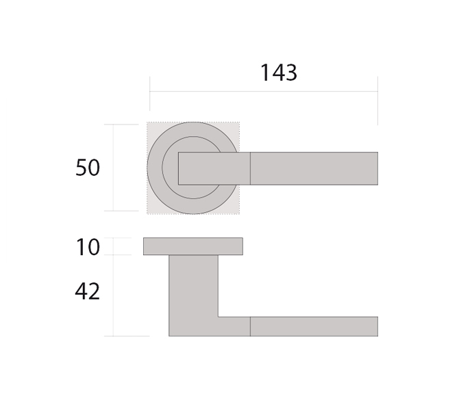 Manilla zamak, con roseta cuadrada y redonda, de 50 mm.