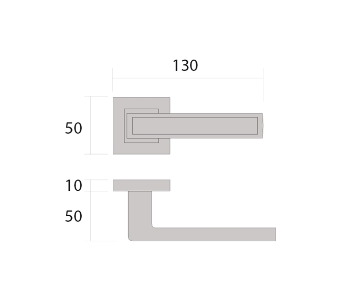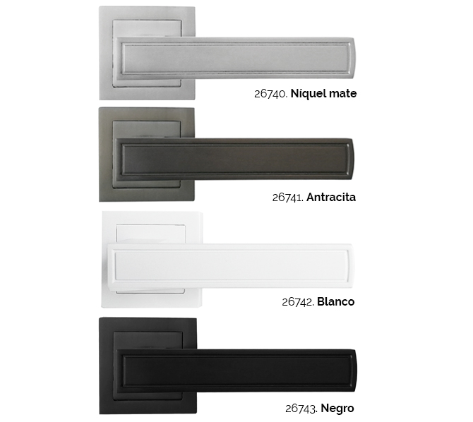 Juego de manilla base zamak, con roseta interior cuadrada, de 50 mm.
