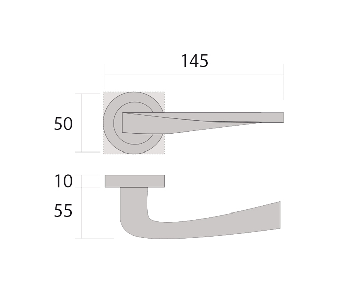 Manilla zamak, con roseta cuadrada y redonda, de 50 mm.