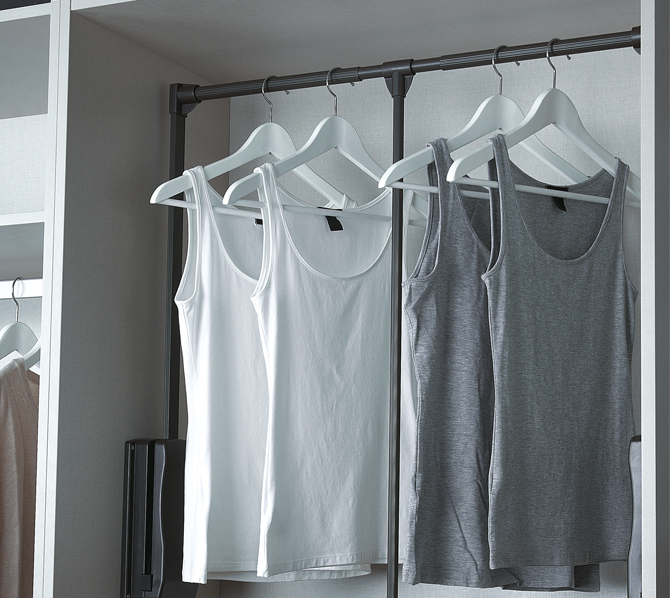 Colgador de perchas. Si no llegas a la barra del perchero, no te preocupes: Con el colgador basculante podrás acercarte a la ropa fácilmente.