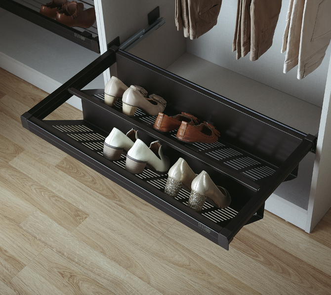 Accesorio metálico para colocar los zapatos de forma organizada en el armario.